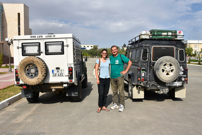Beim Verlassen von Turkmenistan haben wir noch den Kardinalfehler begangen: die GoPro hing an der Scheibe und die Grenzbeamten dachten, wir hätten die Einfahrt in das Gelände gefilmt. Nur mit Mühe und Not konnten wir sie davon überzeugen, dass wir die Grenzeinfahrt nicht gefilmt haben und die Speicherkarte nicht gelöscht werden muss. Die Einreise nach Usbekistan lief völlig problemlos. Wir hatten zwei sehr nette Beamte, die mehr an unserer Reise, als am Inhalt unseres Autos interessiert waren. Selbst die Medikamente - meist ein Problemthema - wurden mit einer wischenden Handbewegung als uninteressant abgetan.